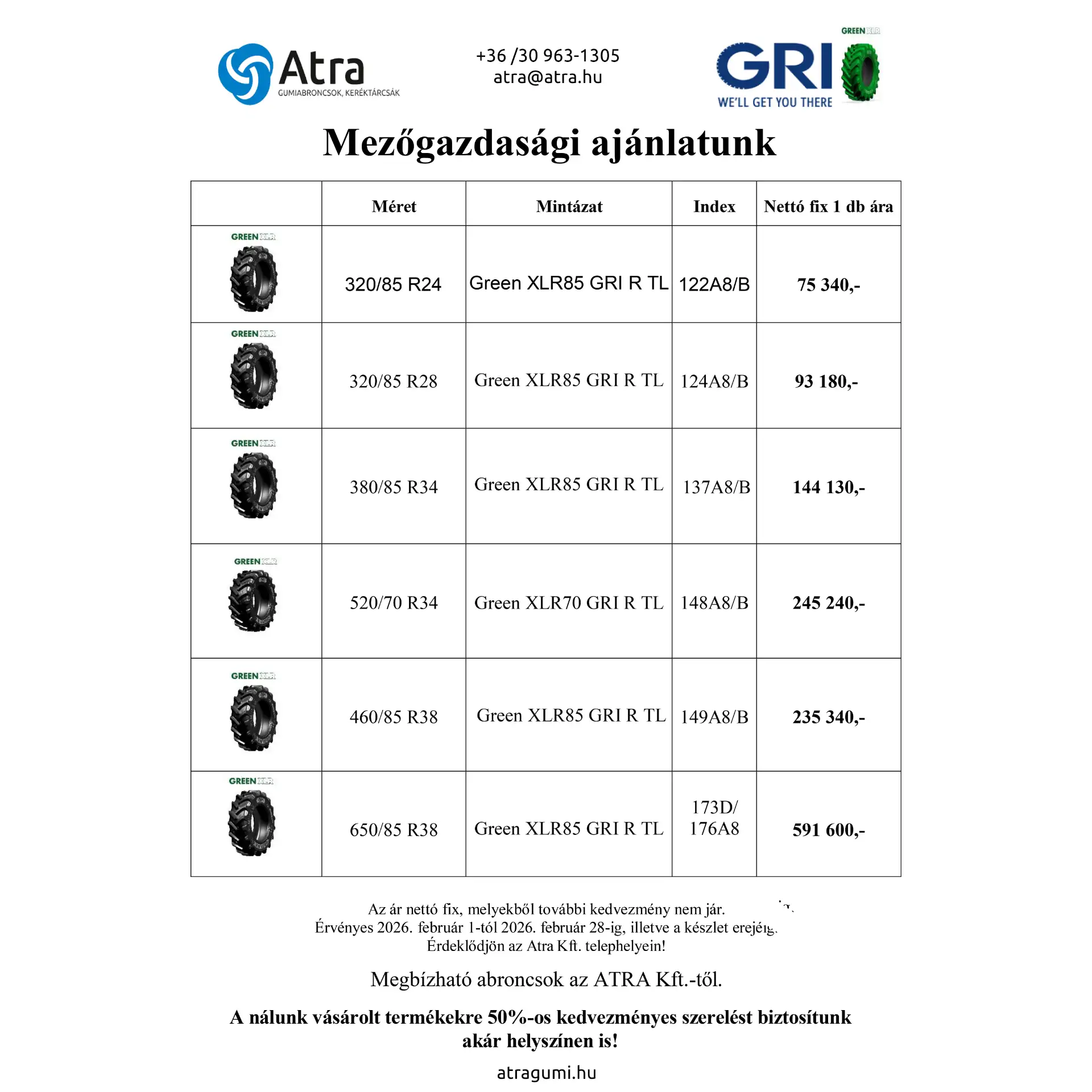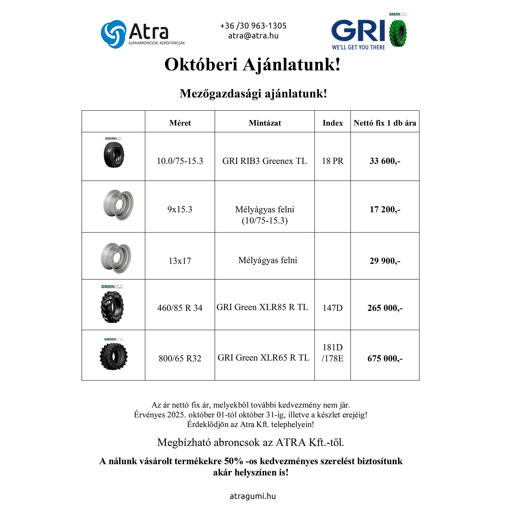 A mezőgazdasági gépeknek folyamatosan magas a karbantartási költsége. A traktorok hatékony üzemeltetéséhez nagyban hozzájárul a megfelelő gumiabroncs kiválasztása. Ehhez segítséget nyújthatnak tanácsadóink, de önállóan a mezőgazdasági gumiabroncs webáruházunkban is betekintést nyerhetnek elérhető kínálatunkról. Elengedhetetlen, hogy tisztában légy a számodra megfelelő abroncs mérettel – még ha biztos is vagy benne, mire van szükséged, nem árt többször leellenőrizni a gép dokumentumai közt a pontos méretet és mielőtt megrendelnéd, írd fel a pontos méreteket.