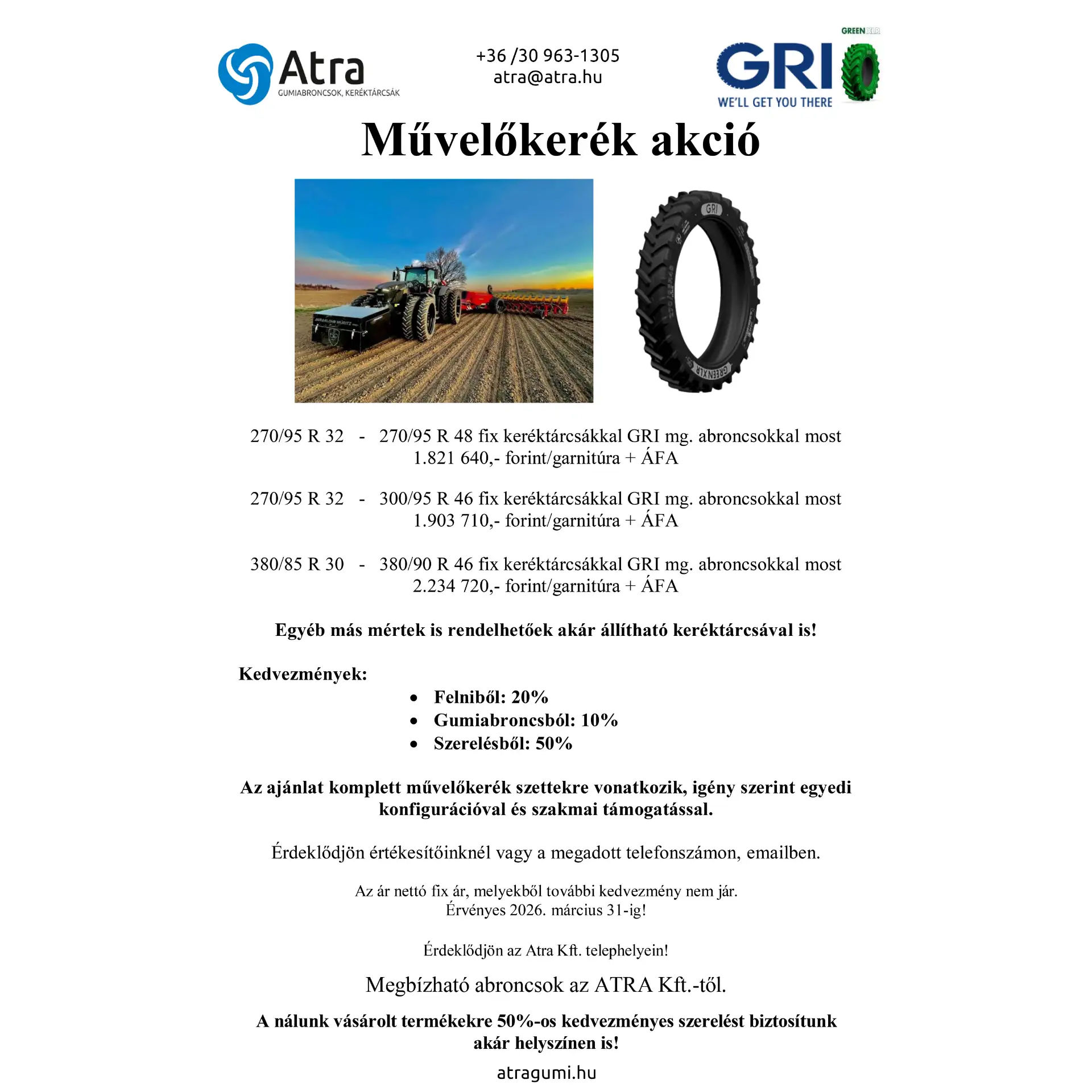 Továbbképzett technikai és gumiszerelő kollégákkal és versenyképes árakkal várunk minden erőgép és munkagép üzemeltetőt.